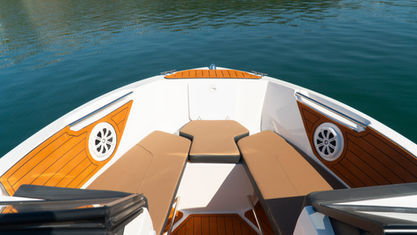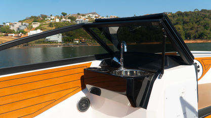 The only vessel in its category with a bathroom, bow solarium, aft walkway and predisposition to install loudspeakers in the stern, in addition to the high side that provides more safety and wider beam.